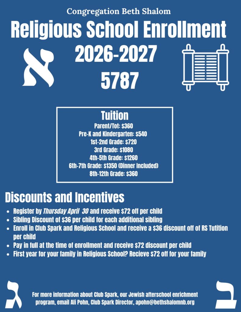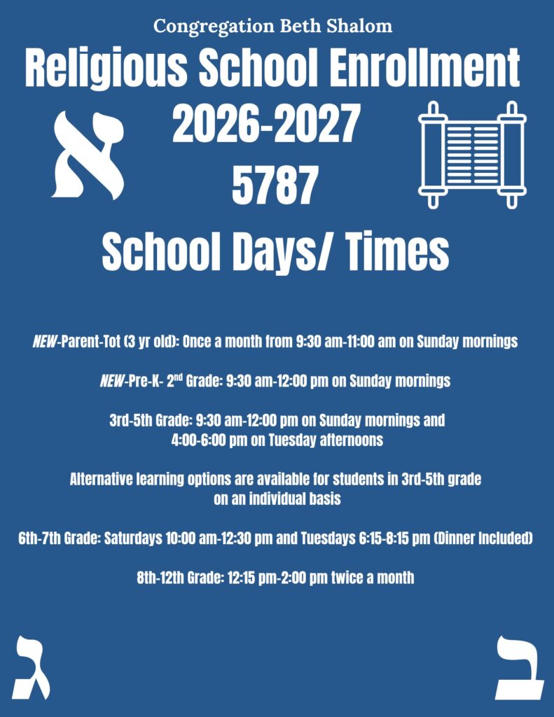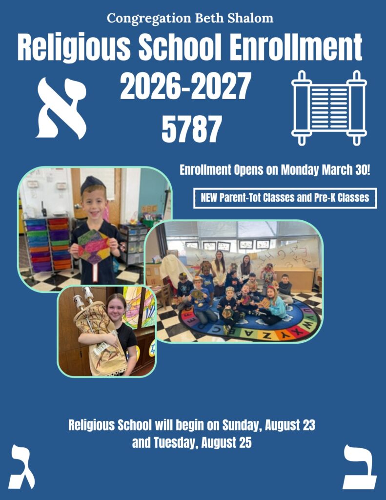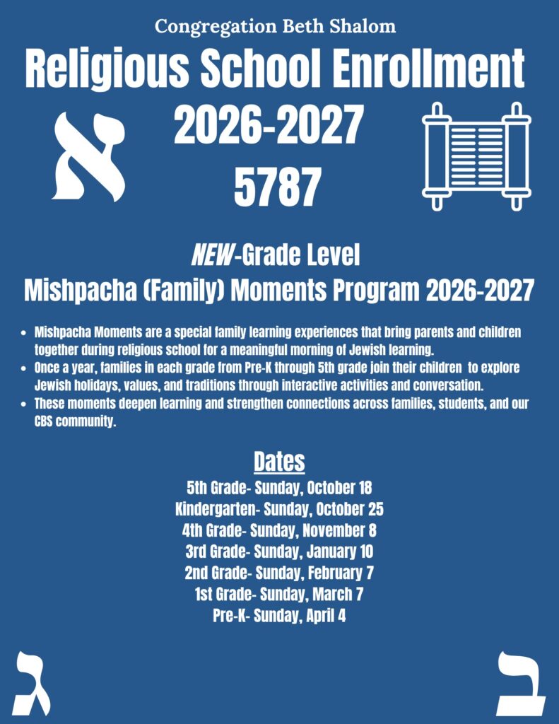 We look forward to welcoming learners into our Religious School for the 2026-2027/5787 Religious School Year! This year, we are thrilled to introduce three new programs: Dorot, a Parent–Tot class for 3-year-olds; Gan Katan, our Pre-K class; and Mishpacha Moments, a new family education experience for each grade PreK–5th. We look forward to welcoming both our returning learners and those joining us for the first time.